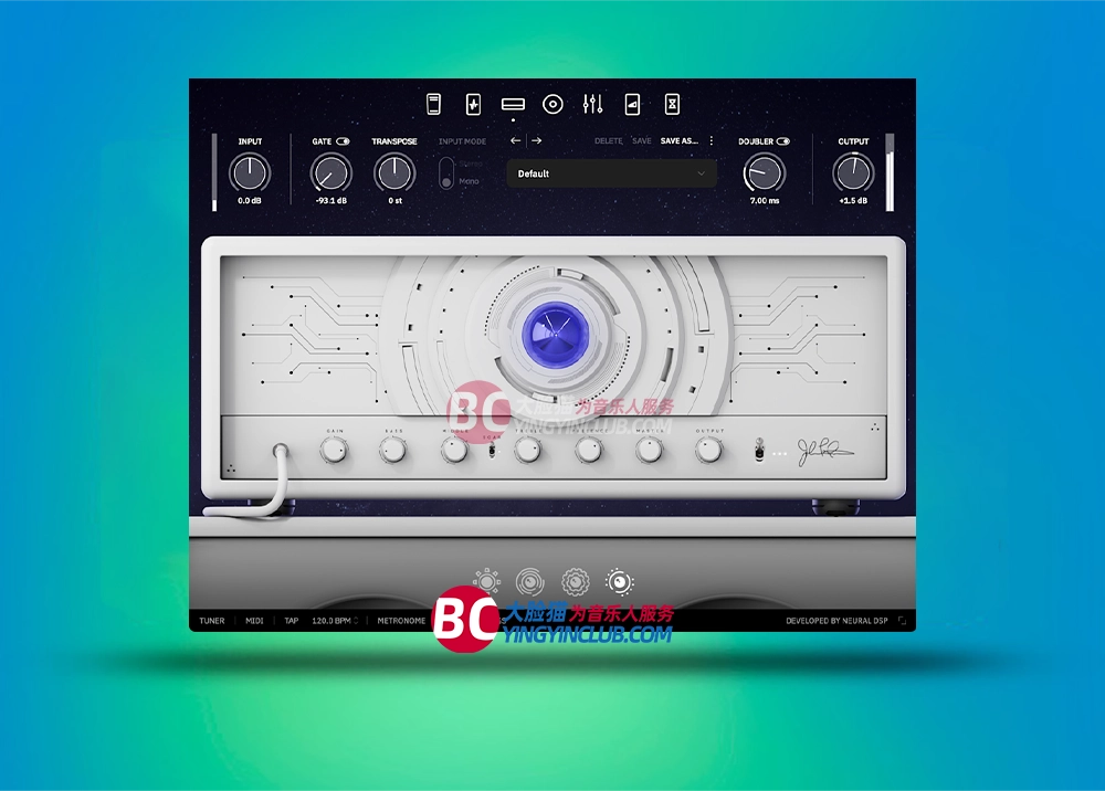 附加功能:包括音高Transpose(可调整吉他音高±12个半音)和 Doubler 模式,能模拟双轨录制的立体声效果,增强音色厚度。